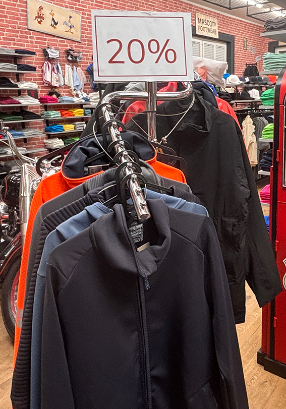 Alle Kleider und Schuhe, die wir derzeit noch im Laden auf Lager haben, gibt’s jetzt mit 20 % Rabatt – solange der Vorrat reicht.