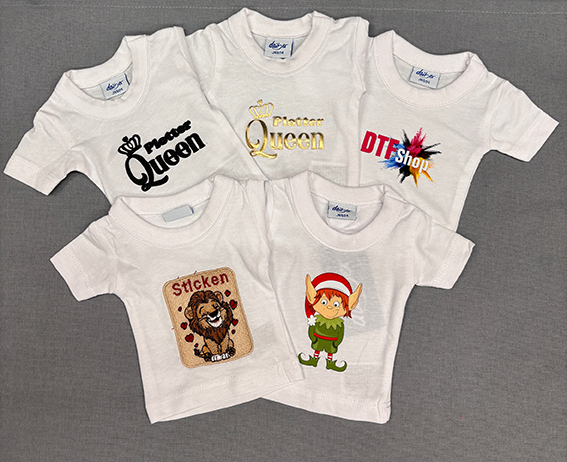 - DTF Transfers können bequem auf Vorrat produziert werden (z,B. Ihr Logo für neue Mitarbeiter auf Vorrat lagern)
